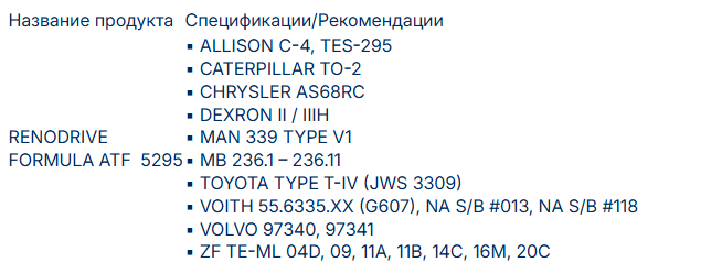 Allison TES 295 это фирменный стандарт Allison (Transmission Engineering Standard) для синтетических ATF с повышенной термостабильностью и ресурсом, чтобы обеспечивать работу и увеличенные интервалы замены в автоматических трансмиссиях Allison (до 240 000 км / 48 месяцев / 4000 м.ч.)